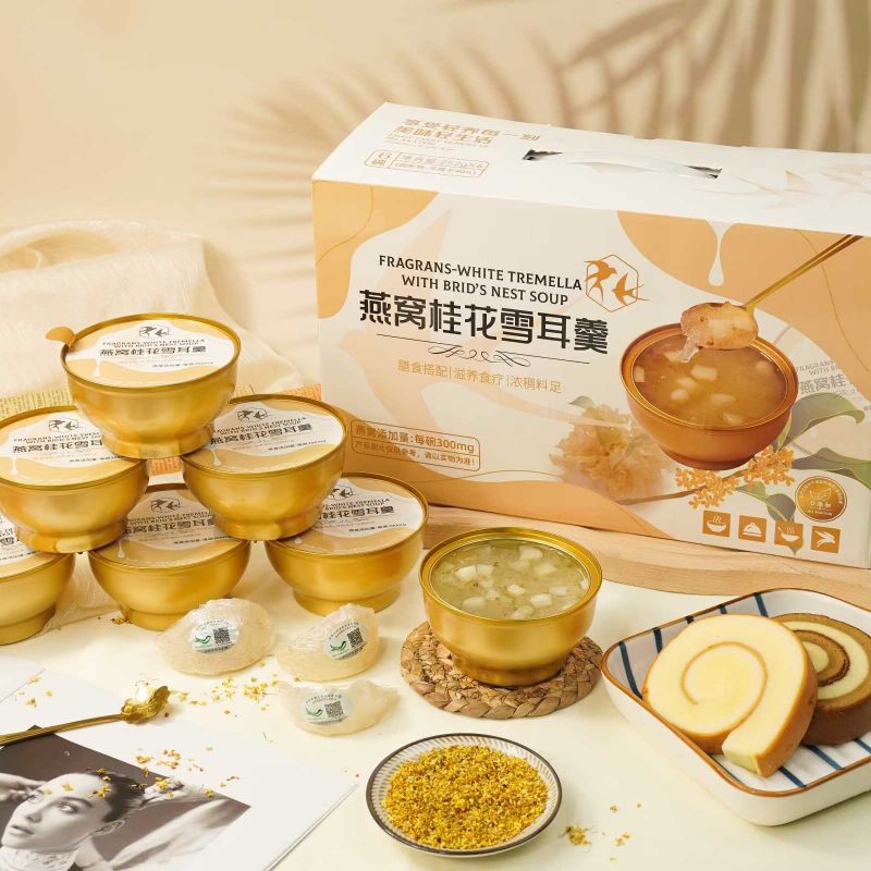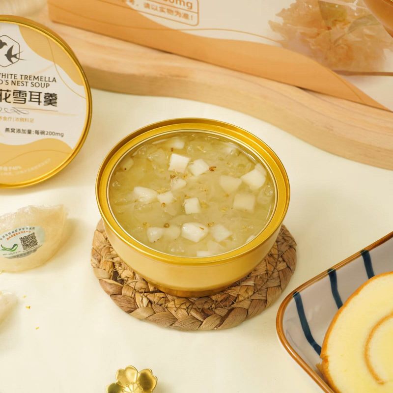 Tremella trắng thơm bổ dưỡng với tổ yến là hộp quà thơm ngon bổ dưỡng được chế biến cẩn thận, kết hợp tinh chất của nấm trắng và tổ yến mang đến cho bạn một bữa ăn thơm ngon và tốt cho sức khỏe. Nó sử dụng nấm trắng chất lượng cao, giàu chất keo, protein và các nguyên tố vi lượng khác nhau. Có tác dụng dưỡng ẩm cho da và bổ sung dưỡng chất. Kết hợp với tổ yến quý giá, nó mang lại cho bạn sự nuôi dưỡng và vẻ đẹp tự nhiên, trở thành sự lựa chọn tuyệt vời cho sức khỏe và sắc đẹp.