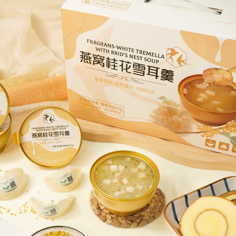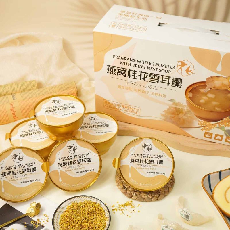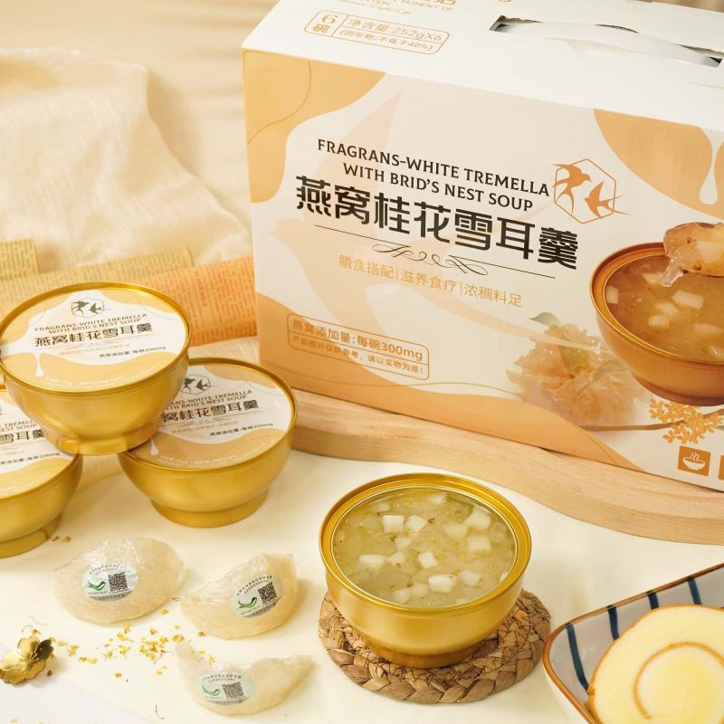 252g*6Tên sản phẩm: Tremella trắng thơm bổ dưỡng kèm súp yến sào-Hộp quà cổ điển