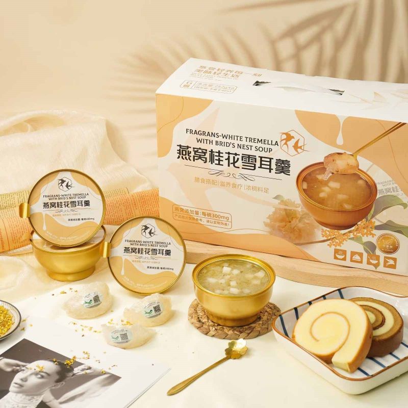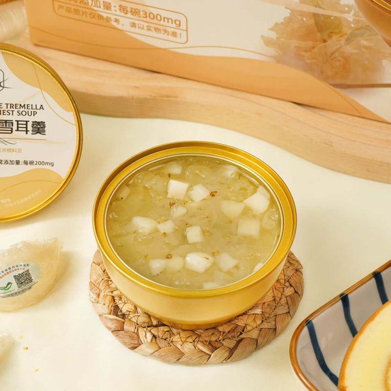 Fragrans White Tremella với Yến Sào đã khéo léo kết hợp Tremella trắng chất lượng cao và tổ yến quý giá. Đồng thời, trên cơ sở cổ điển, nó đã khéo léo thêm vào osmanthus, một thành phần tạo mùi thơm độc đáo, để tạo cho món súp có lớp và kết cấu đậm đà hơn. Hương vị độc đáo.